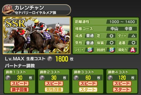 | 調教1 | 瞬発力:大、調子回復:大 | |