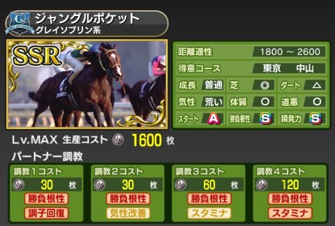| 調教1 | 勝負根性:大、調子回復:大 | |