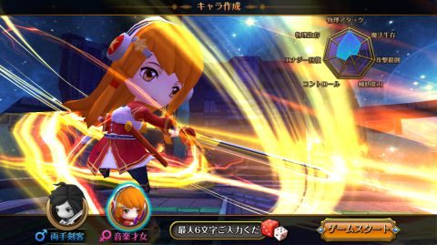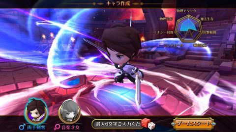 「両手剣客」、「音楽才女」の2人からキャラクターを選択し、名前を入力してゲームを開始します。
