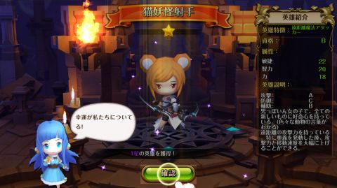 ▲チュートリアルガチャは猫妖怪射手が確定しています。