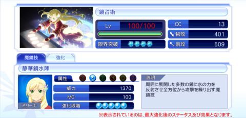 ▲鏡占術(ミリーナ / 静華鏡水陣)