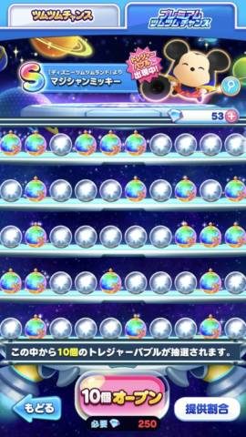 ツムツムチャンスはステージクリアで手に入るトレジャーからランダムでアイテムが手に入り、運よくバブルに当たればツムが手に入ります。