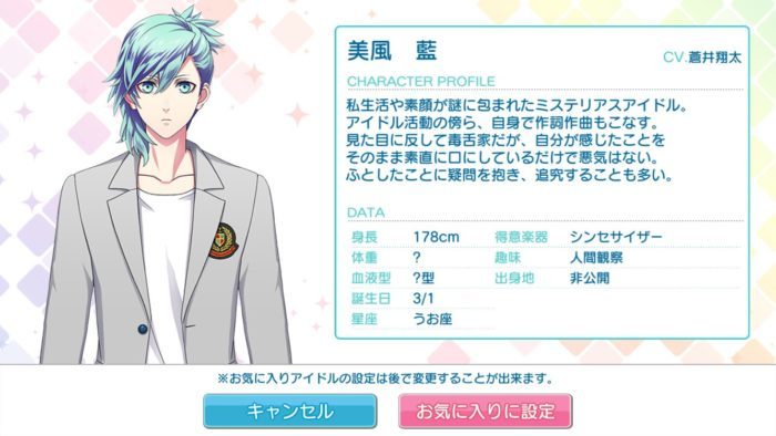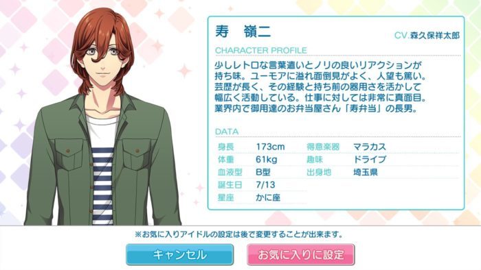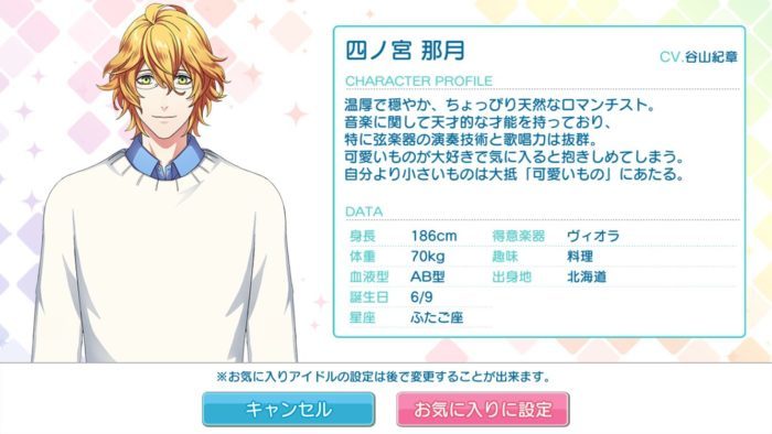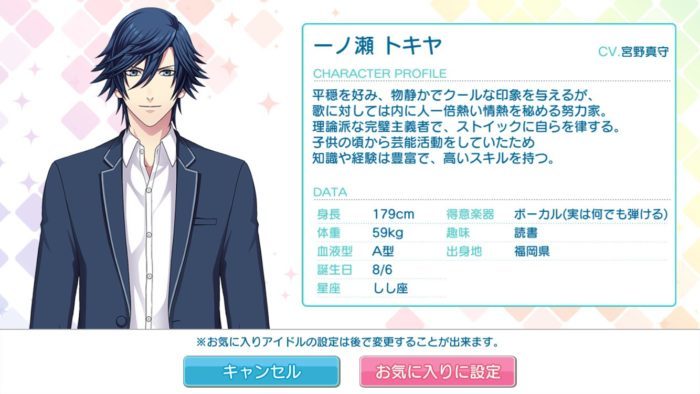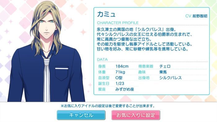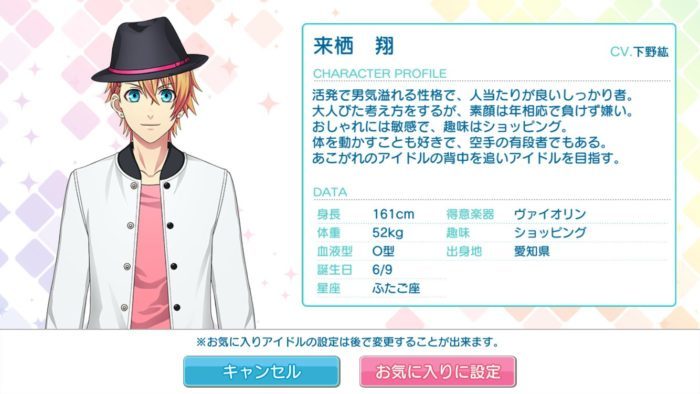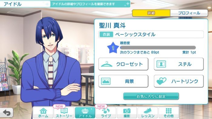 お気に入りアイドルはアイドル詳細からいつでも変えることができるので、深く悩まずに好みのキャラクターを選びましょう。