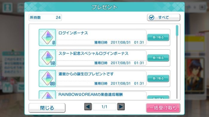 リセマラ中はライブでのフルコンボや誕生日の設定でもらえるプリズムが増えます。