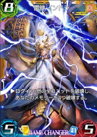 | クイック オーバーヒート:+2/+2する。 ログイン:<覇王カード>1枚を手札に加える。オーバーヒートで出た場合、代わりに<覇王カード>全種類を手札に加える。 | ||