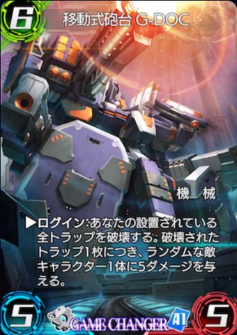 | ログイン:あなたの設置されている全トラップを破壊する。破壊されたトラップ1枚につき、ランダムな敵キャラクター1体に5ダメージを与える。 | ||