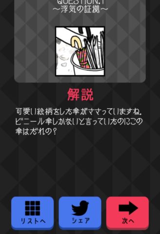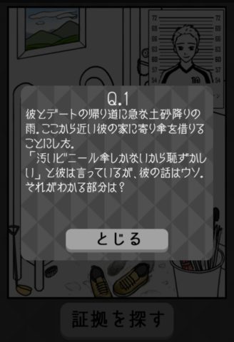 画面右下の傘立ての中にあるカラフルな傘をタップし、「証拠を探す」を押そう。