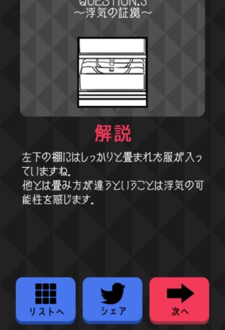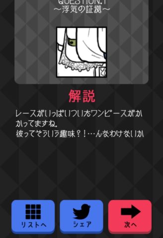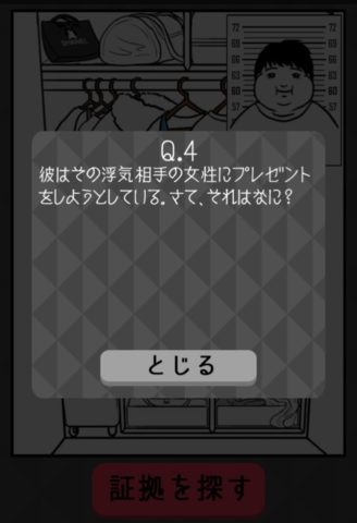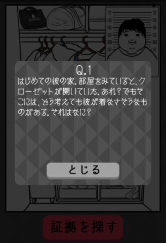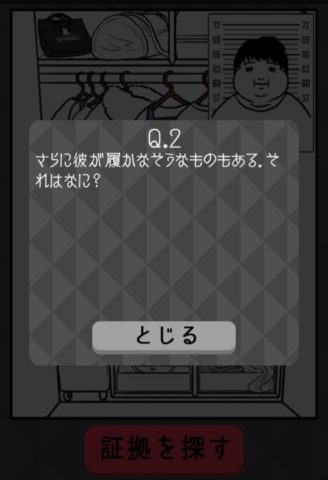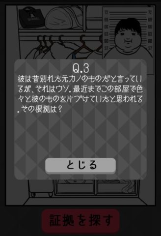 クローゼットの左の方にあるレースの服をタップし、「証拠を探す」を押そう。