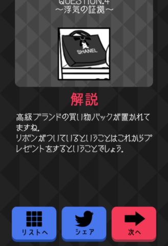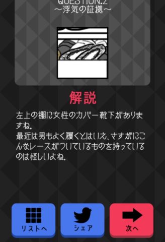 画面下の左上の棚にある女性用の靴下をタップし、「証拠を探す」を押そう。