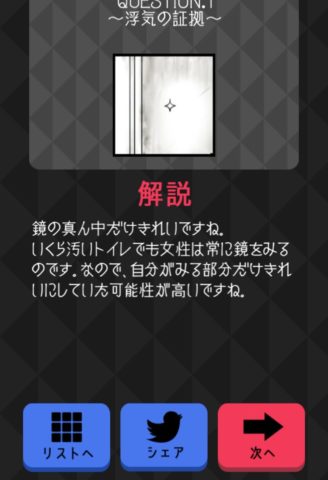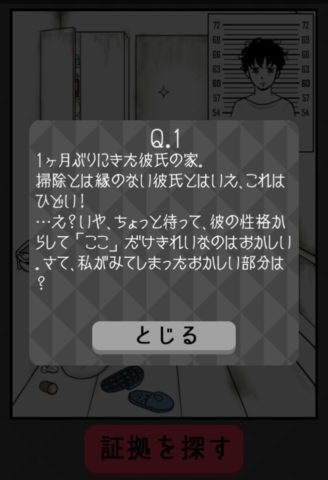 画面中央上の鏡が光っている部分をタップし、「証拠を探す」を押そう。