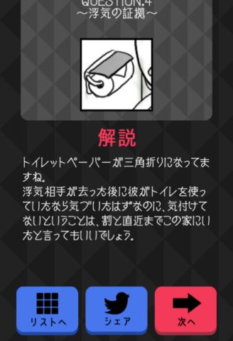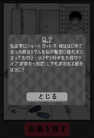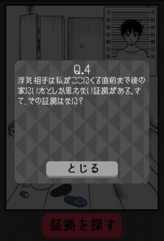 画面左のトイレットペーパーをタップし、「証拠を探す」を押そう。