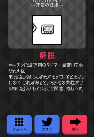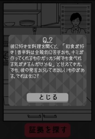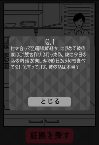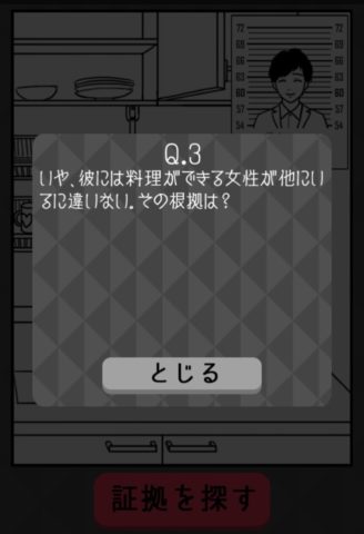 キッチンの壁に付いている「キッチンタイマー」をタップし、「証拠を探す」を押そう。