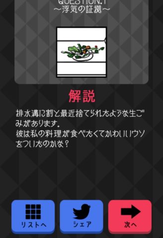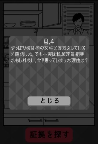 画面左下の排水溝の生ごみをタップし、「証拠を探す」を押そう。