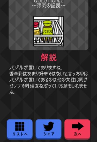 画面左の棚の2段目にある「バジル」をタップし、「証拠を探す」を押そう。
