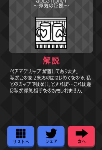 画面左の棚の1段目にある「ペアマグカップ」をタップし、「証拠を探す」を押そう。
