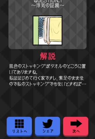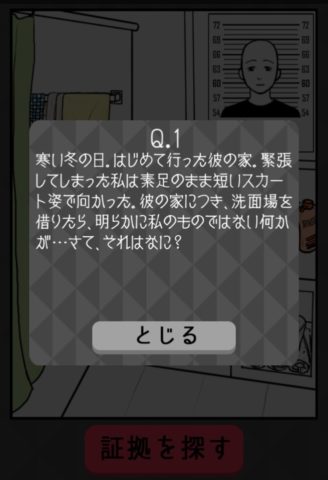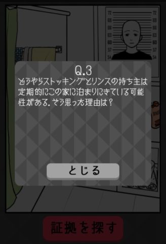 画面左のタオル横にかかっている「ストッキング」をタップし、「証拠を探す」を押そう。