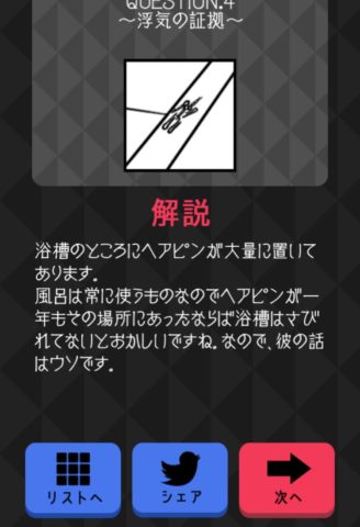 浴槽の淵にある「ヘアピン」をタップし、「証拠を探す」を押そう。
