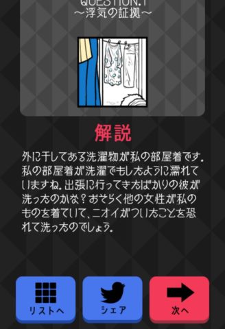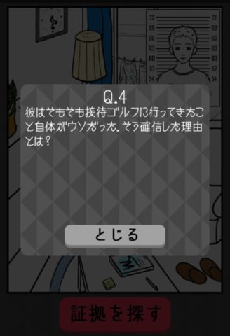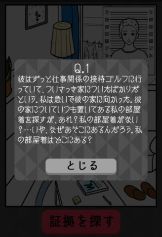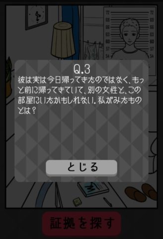 窓の外に干してある水玉の部屋着をタップし、「証拠を探す」を押そう。