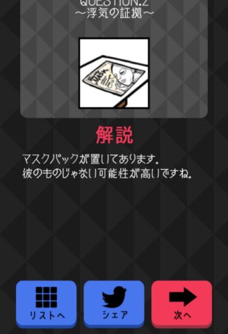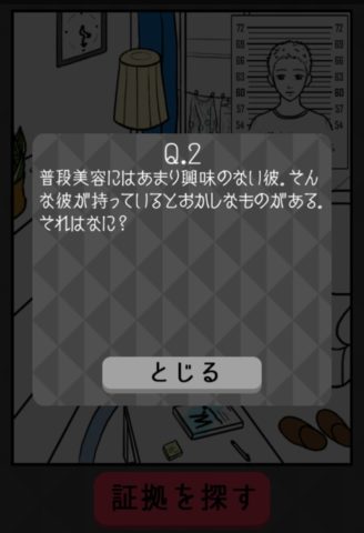 左のタンスの上にあるマスクパックをタップし、「証拠を探す」を押そう。