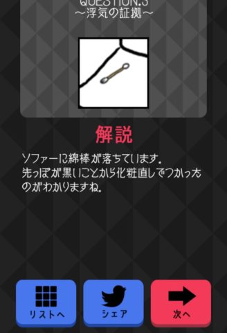 椅子の上の綿棒をタップし、「証拠を探す」を押そう。