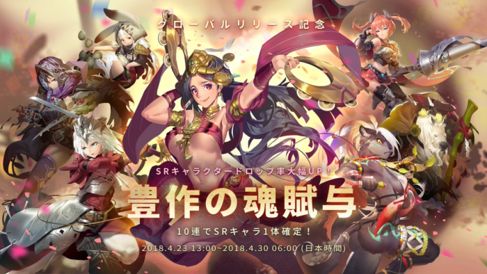 SRキャラクターの合計出現率は6.8%(通常は約3.2%)、特に通常の魂賦与で出現率0.02%(1/5,000)となっているフレデリカ、シャリス、シオン、シエル、リー、闇月、リサの7人は確率5倍の0.1%となっているので、開催中は万象の魂賦与ではなく、豊作の魂賦与を引きましょう。