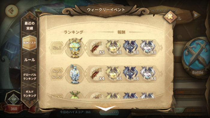 幻想世界トライアルではウィークリーランキング報酬として、順位に応じた数の時のしおりが手に入ります。