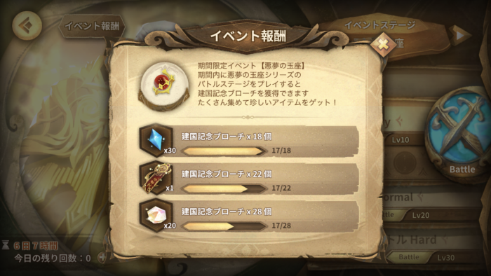 イベントステージを周回してアイテムを集めるイベントですが、1日2回の挑戦回数の制限があり、毎日コツコツ集める必要があるので注意です。