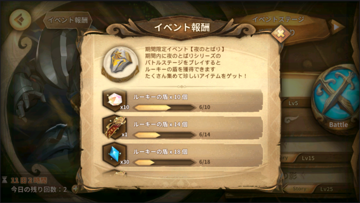 期間限定イベントは1日2回の回数制限があるので、報酬がなくなるまで毎日挑戦してイベントアイテムを集めましょう。