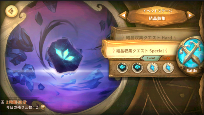 毎日結晶収集は2回までクリアすることができ、デイリーのミッションでもカケラがもらえます。