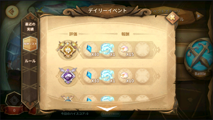 毎日稼げる要素はイベントステージの結晶収集と幻想世界です。