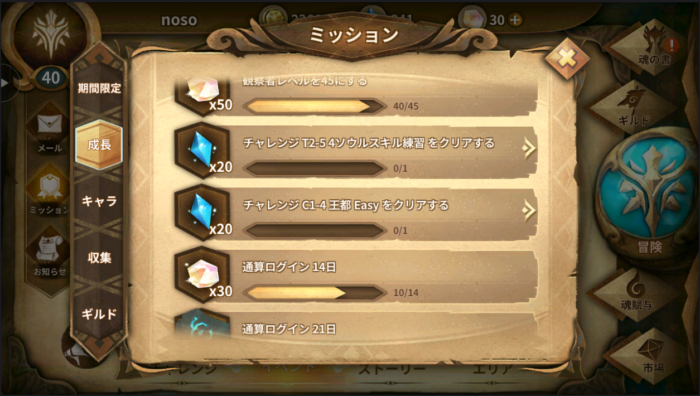ギルドレベル、貢献レベルを上げることで新たなギルドミッションが解放されます。