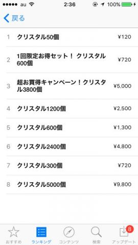 限定販売のクリスタルセットを除き、その他の順位は変わっていません。
