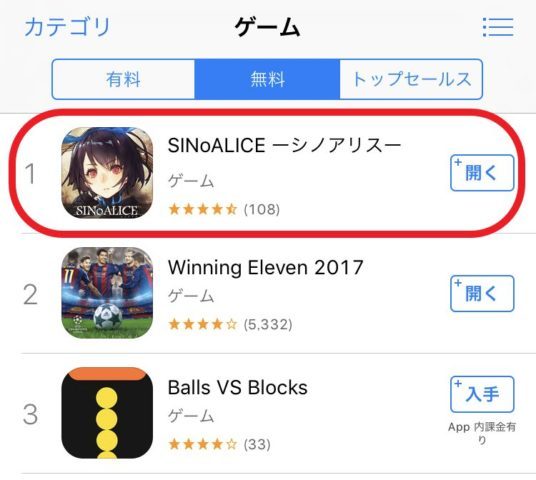 大ヒットタイトルはだいたいこの洗礼を受けるのですが、そのまま沈んでしまうタイトルもあるので、「シノアリス」の今後に個人的に大注目です。