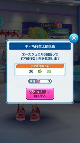 ▲「ギア所持数上限拡張」はエースジュエル3個で購入できる。
