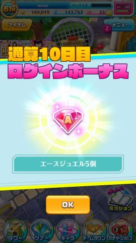 キリのいい通算ログイン日数でも「エースジュエル」をもらえるようです。