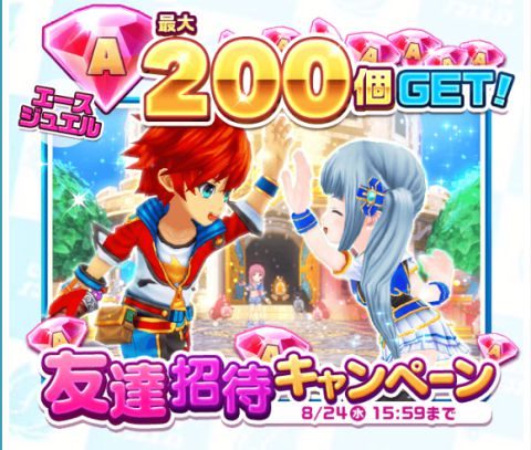 「友達招待キャンペーン」では最大200個の「エースジュエル」をもらえます!