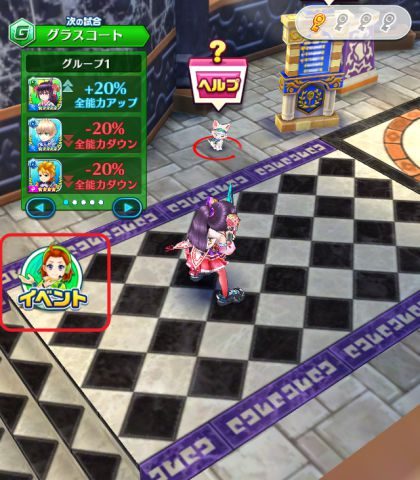 「友情ダブルス」はタワーに「イベント」のボタンがあるので、そこから挑戦することができます。