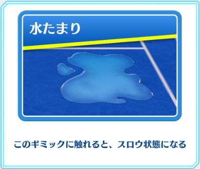 「水たまり」を踏むと「スロウ」状態になり動きが遅くなります。