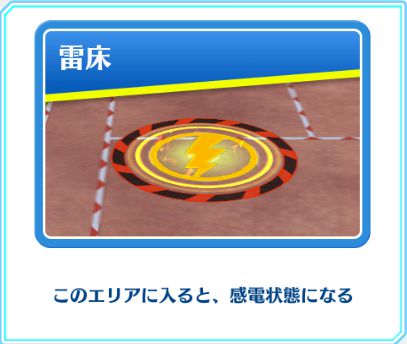 「雷床」を踏むと「感電」状態になり、「スイングエリア」が狭くなります。