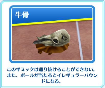 「牛骨」と同様に通り抜けることができず、ボールが当たるとイレギュラーを発生させます。