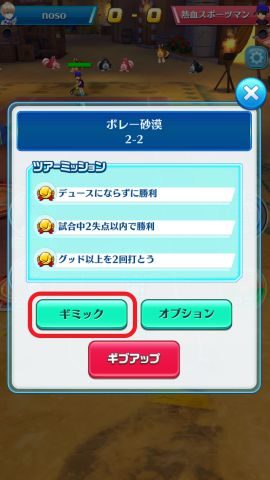 ▲試合中に「メニュー」の「ギミック」から効果を確認できる。