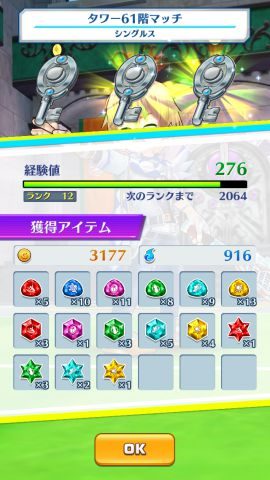 ▲タワー61階の勝利で3177ゴールドもらえました。