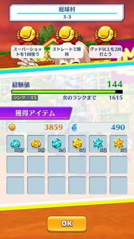 庭球村のスタークラス3-3は2ゲーム先取ですが、4000近くもらえて難易度も低いので、スピードのスタールーンも一緒に集めるならいいですね!