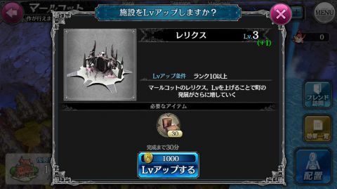 マールコット上にあるレリクスはプレイヤーのランクを条件としてレベルアップすることが出来ます。