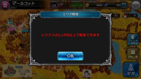 未開放のエリアをタップすることで解放されるレリクスのレベルを確認することが出来ます。