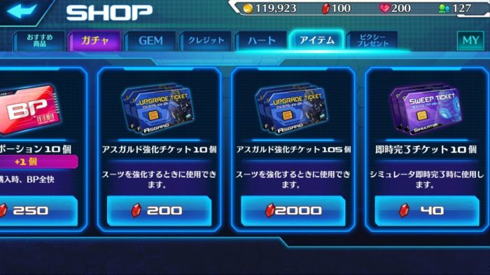 また商店で購入できる「アスガルドチケット」を使うと大成功率が50%アップします。