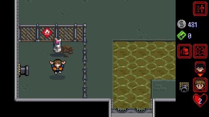 左の扉を開け、装置を殴って右の扉を開けて進む。