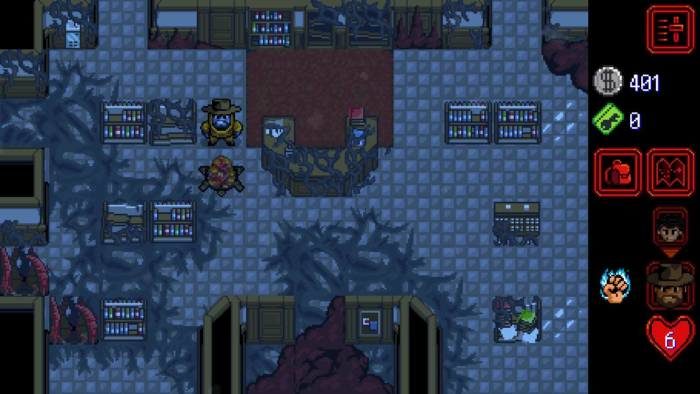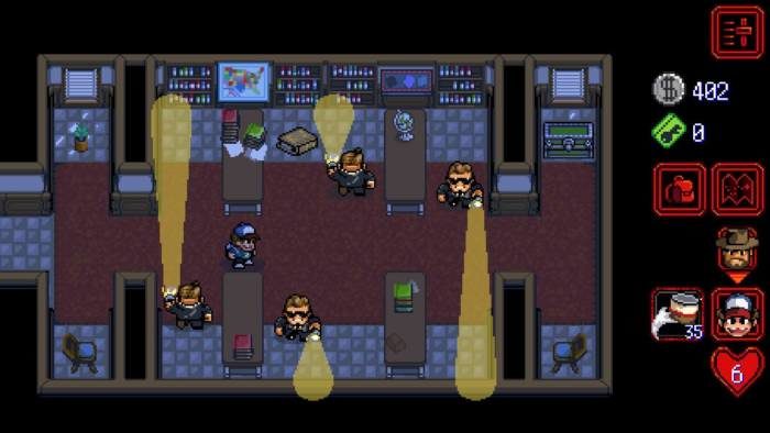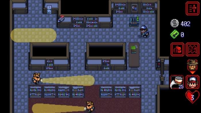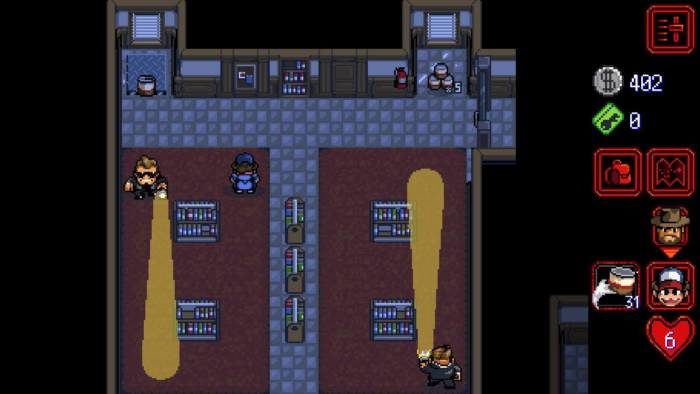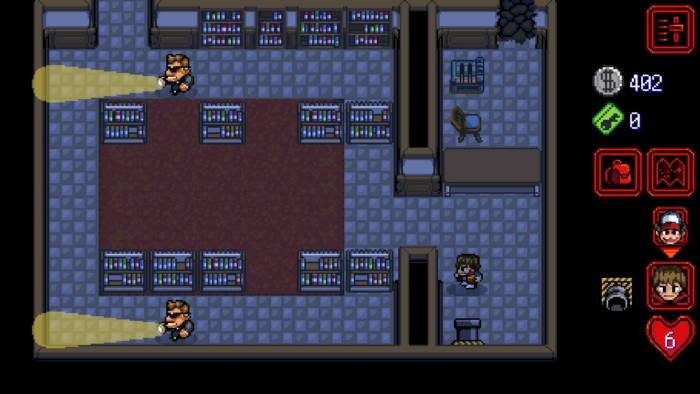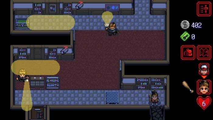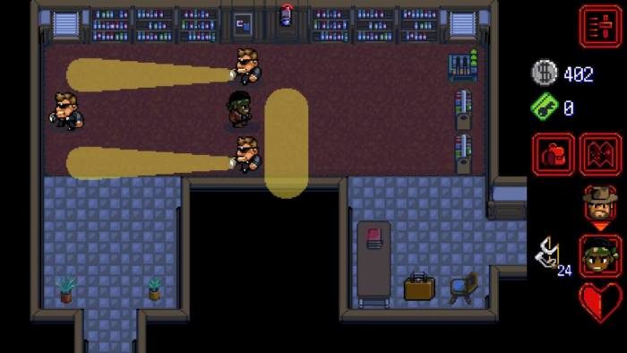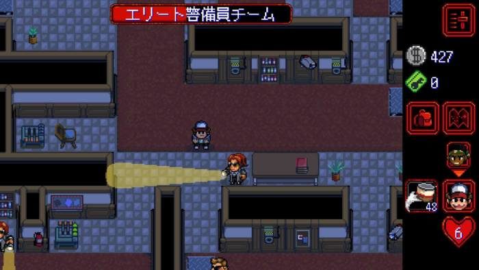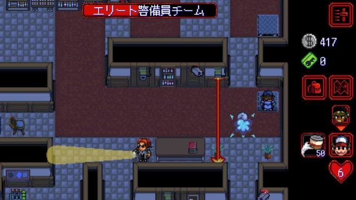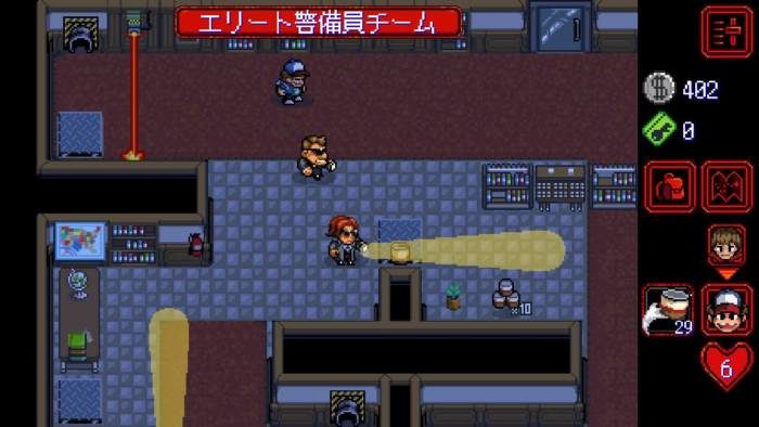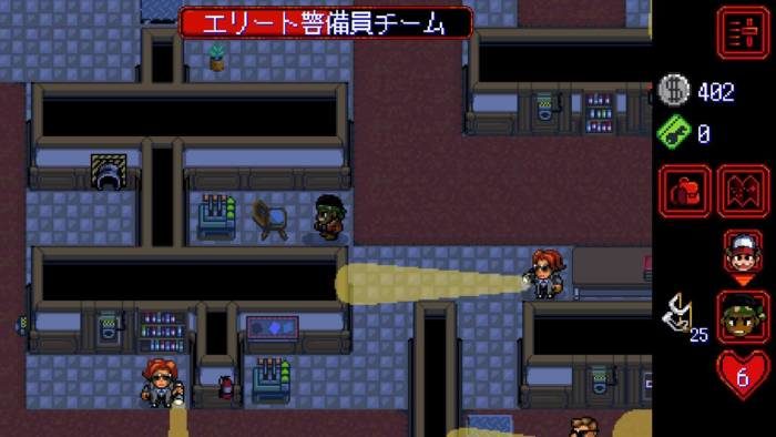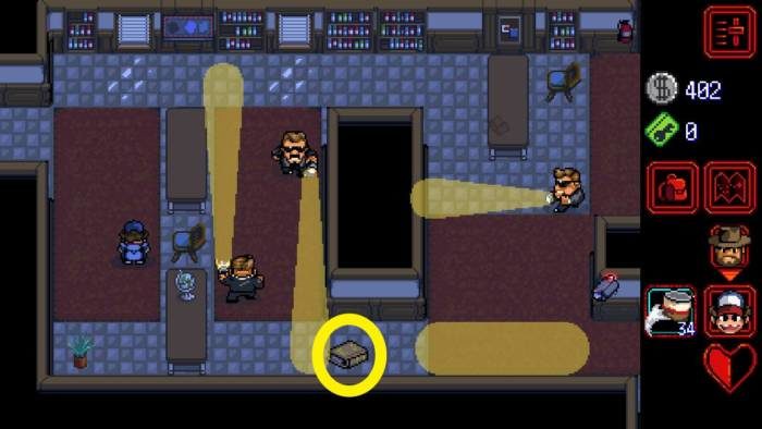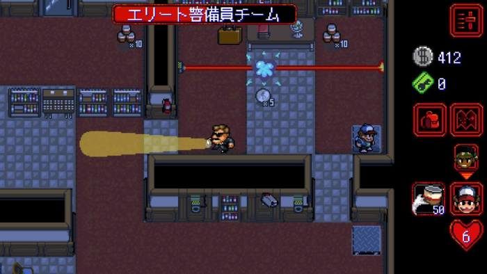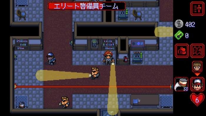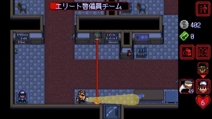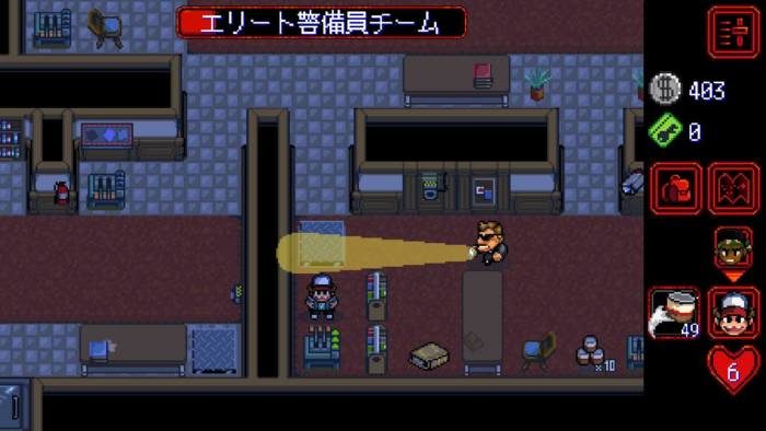 右下の部屋で装置をタイミングよく殴って歩いている警備員を倒す。