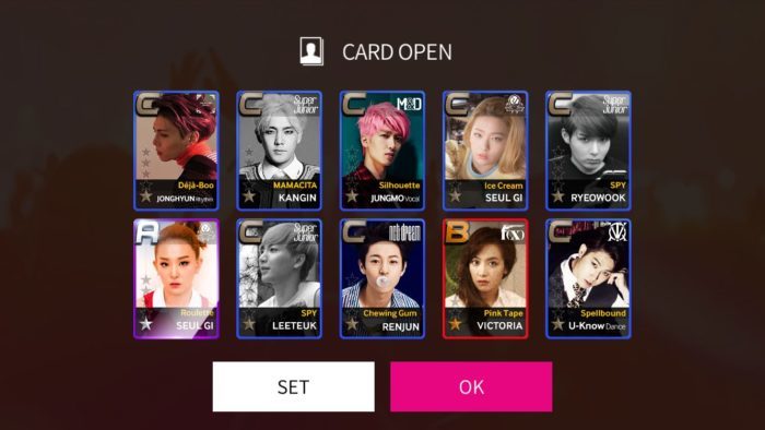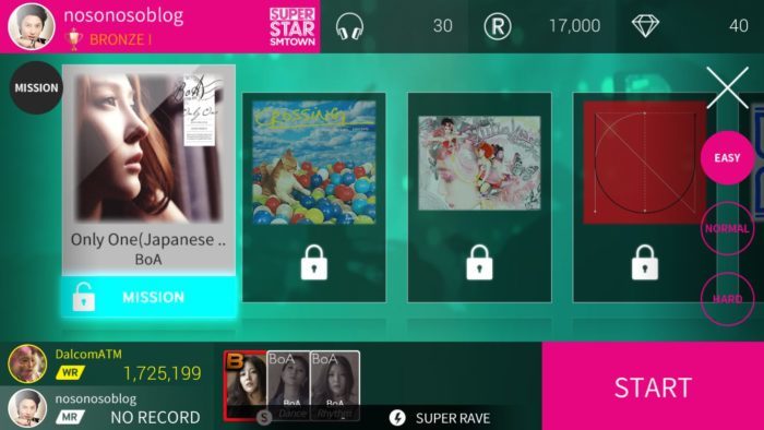 SUPERSTAR SMTOWNは楽曲をクリアすることで次々と楽曲が解放され、遊べる曲が増えていきます。(最初は遊べる曲が少ないです)