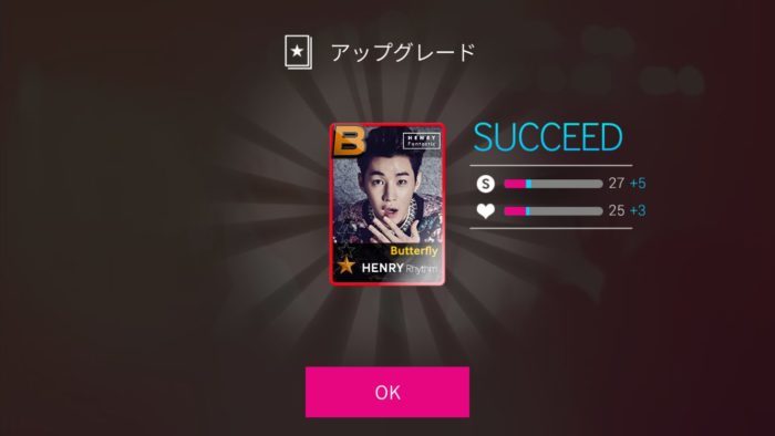 アップグレードに成功するとカードのグレードが1段階上がります。(失敗は確認できていません。)